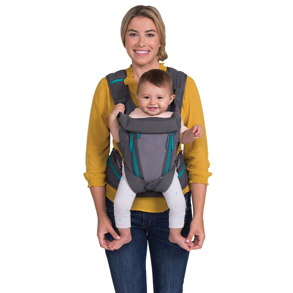 - 4 modes de portage : ventral (assise réduite), ventral (assise large), face au monde et dorsal