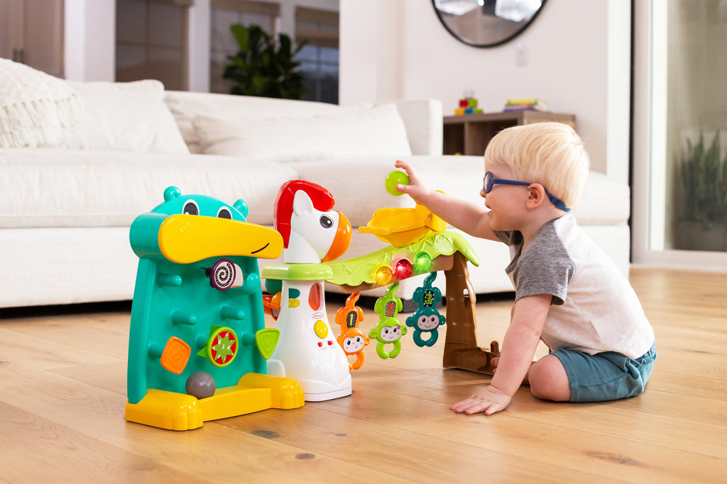 1 : Regardez les balles rouler, sauter et rebondir d'un côté à l'autre du centre en écoutant une musique rigolote et aux lumières éclatantes.