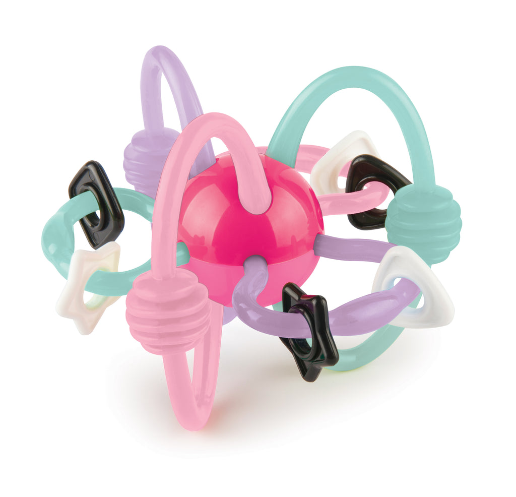Parfaitement conçu pour les petites mains, ce hochet éveillera bébé grâce à ses textures et couleurs variées.