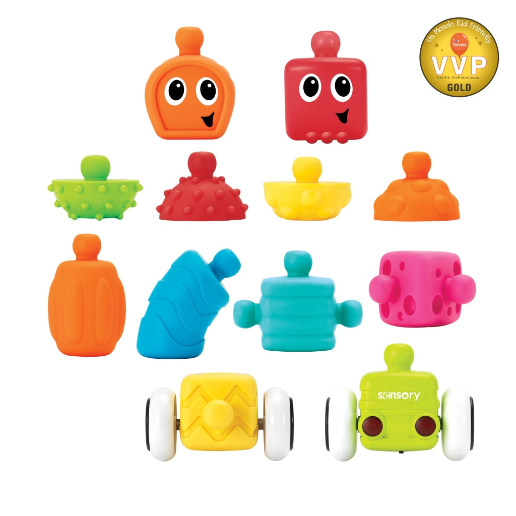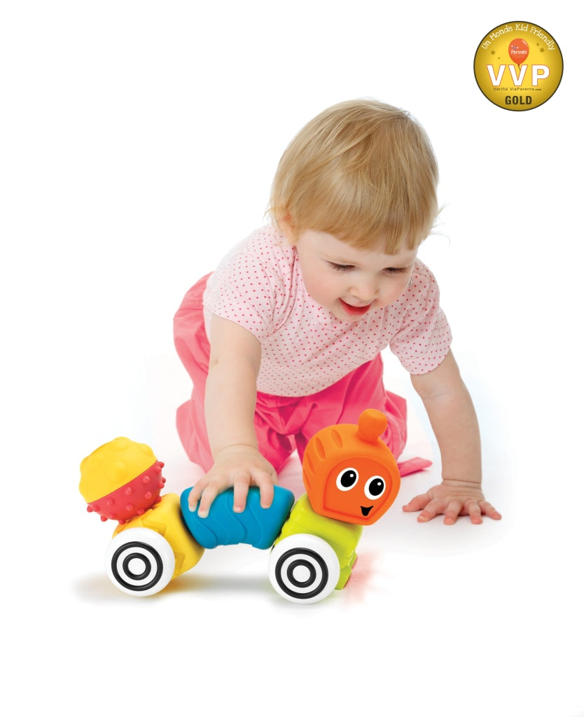 Idéal pour l’initiation à la construction par les tout-petits, ces 12 blocs colorés, en plastique souple, sont agréables à manipuler. Leur large dimension facilite la prise en main par des tout jeunes enfants. Avec différents reliefs pour une approche tactile. Les enfants découvrent les formes mais aussi les couleurs, et développent leur imagination et créativité. Faciles à emboîter et déboîter, ils permettent une multitude d’options d’assemblage. 1 bloc est électronique avec 3 mélodies, 4 effets sonores et lumière pour encore plus d’amusement. Le baril transparent est pratique pour le rangement et la poignée pour l’emporter n’importe où avec soi.