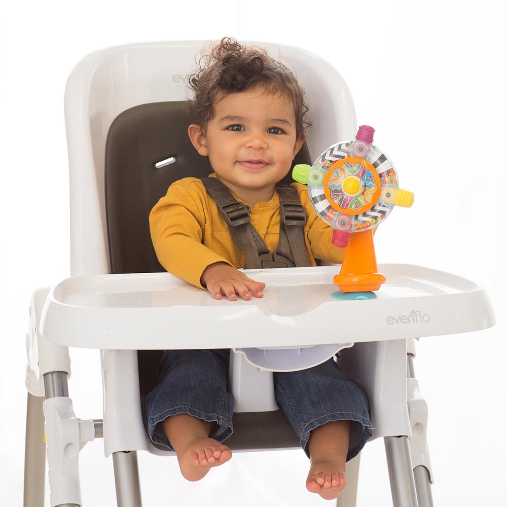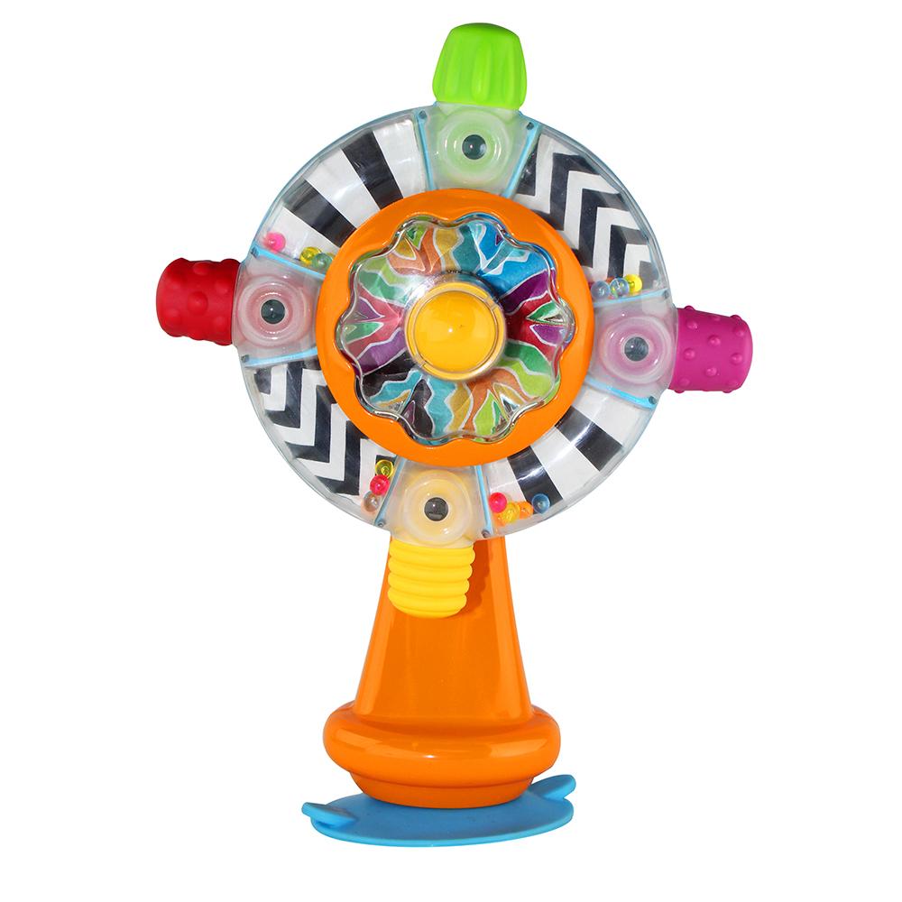 Une roue que bébé fera tourner très vite pour observer son effet kaléidoscope et entendre les petites billes colorées qui s'entrechoquent. Grâce à sa base ventouse, elle reste bien stable sur la chaise haute et sur la table de bébé. Un jeu idéal à emporter en voyage, pour la tablette du train et de l'avion !