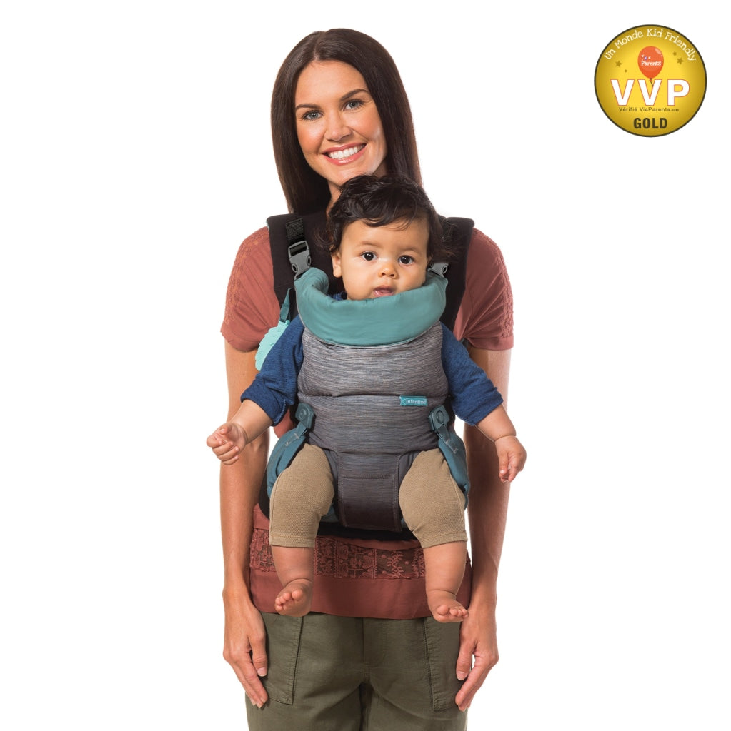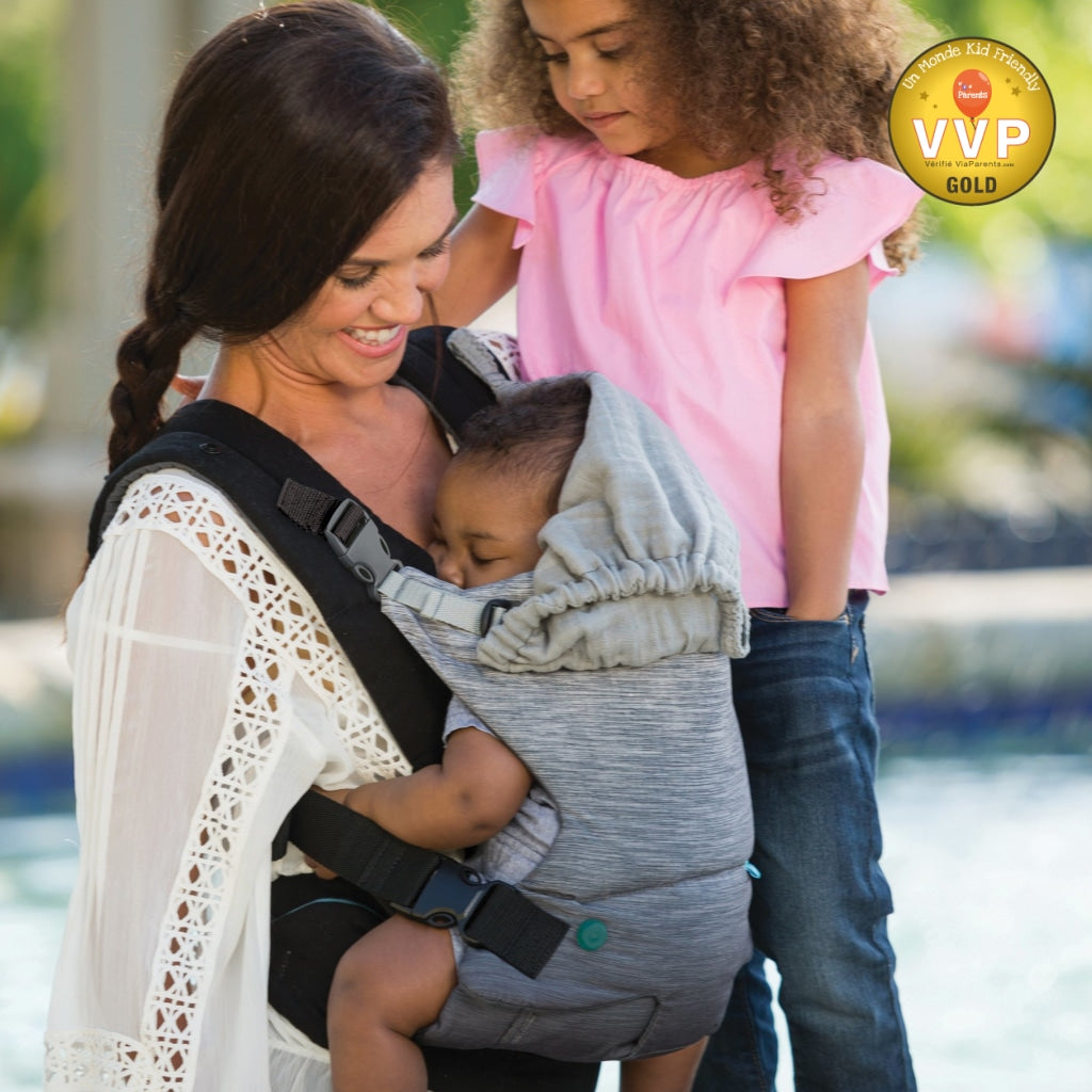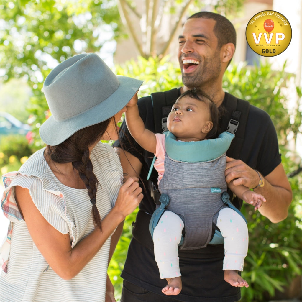 - 4 positions de portage : ventral bébé de face avec assise réduite, ventral bébé de face avec assise large, ergonomique ventral bébé face au monde, dorsal