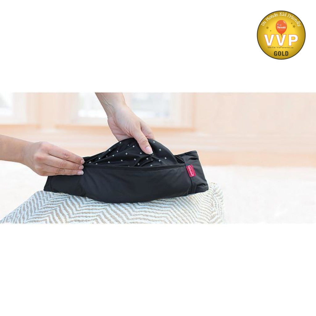 A plier de manière ultra compacte en sac banane, ce porte-bébé est pratique au quotidien car très peu encombrant, extrêmement facile à ranger dans un sac à langer, un sac à main ou tout simplement à porter sur l'épaule. Ce porte-bébé est idéal pour les sorties, les voyages, les aéroports ou disponible dans la voiture, il se plie et se déplie en quelques secondes. Il se plie et se range dans la poche à fermeture à glissière, située dans la ceinture. Il a une légèreté impressionnante (280 grs) et est très résistant. Les bretelles sont rembourrées pour le confort des utilisateurs. Les boucles de fixation sont situées à l'avant pour une utilisation très facile (ouverture et fermeture des boucles : pas besoin d'aide pour installer bébé ou le retirer du porte-bébé. Les boucles sont directement accessibles). Dimensions de la ceinture (tour de taille) : de 66 à 124,5 cm. 2 modes de portage :Ventral et Dorsal. Position siège ergonomique en portage ventral.